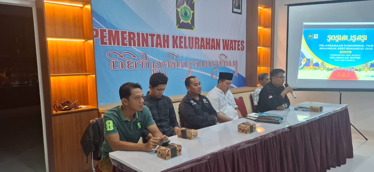 Pada hari Selasa Tanggal 12 Agustus 2025 di aula Kelurahan Wates di laksanakan Rapat Koordinasi Sosialisasi Pelaksanaan Manunggal Fair Binangun Kertaraharjo Tahun 2025 bersama Pemerintah dan Warga Kelurahan Wates dan sekitarnya. Hadir dalam acara Direktur Perusahaan Umum Daerah Aneka Usaha Kulon Progo Bapak Muhammad Nasta'in, S.E., M.M., Dinas Perhubungan, Dinas Lingkungan Hidup, Dinas Perdagangan, Dinas Satpol PP Kulon Progo, Kapolsek Wates, Lurah Wates, Bhabinkamtibmas, Babinsa Kelurahan Wates dan Ketua RW, Ketua RT, Jaga Warga, Linmas, Karang Taruna dari wilayah Beji, Punukan dan Terbah dan juga wakil dari Gereja Kristen Jawa (GKJ) dan Gereja Santa Maria Bunda Penasihat Baik Kelurahan Wates.